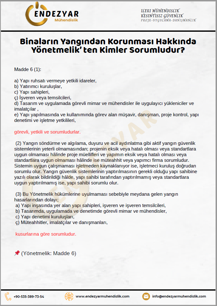 sorumlu olur. Yangın güvenlik sistemlerinin yaptırılmasının gerekli olduğu yapı sahibine