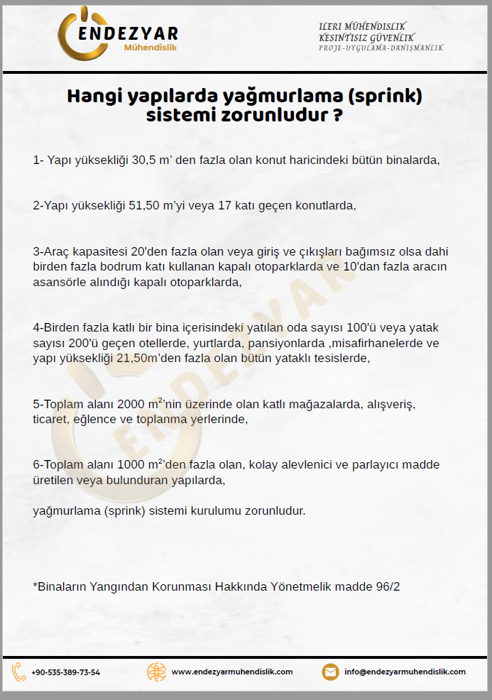 *Binaların Yangından Korunması Hakkında Yönetmelik madde 96/2